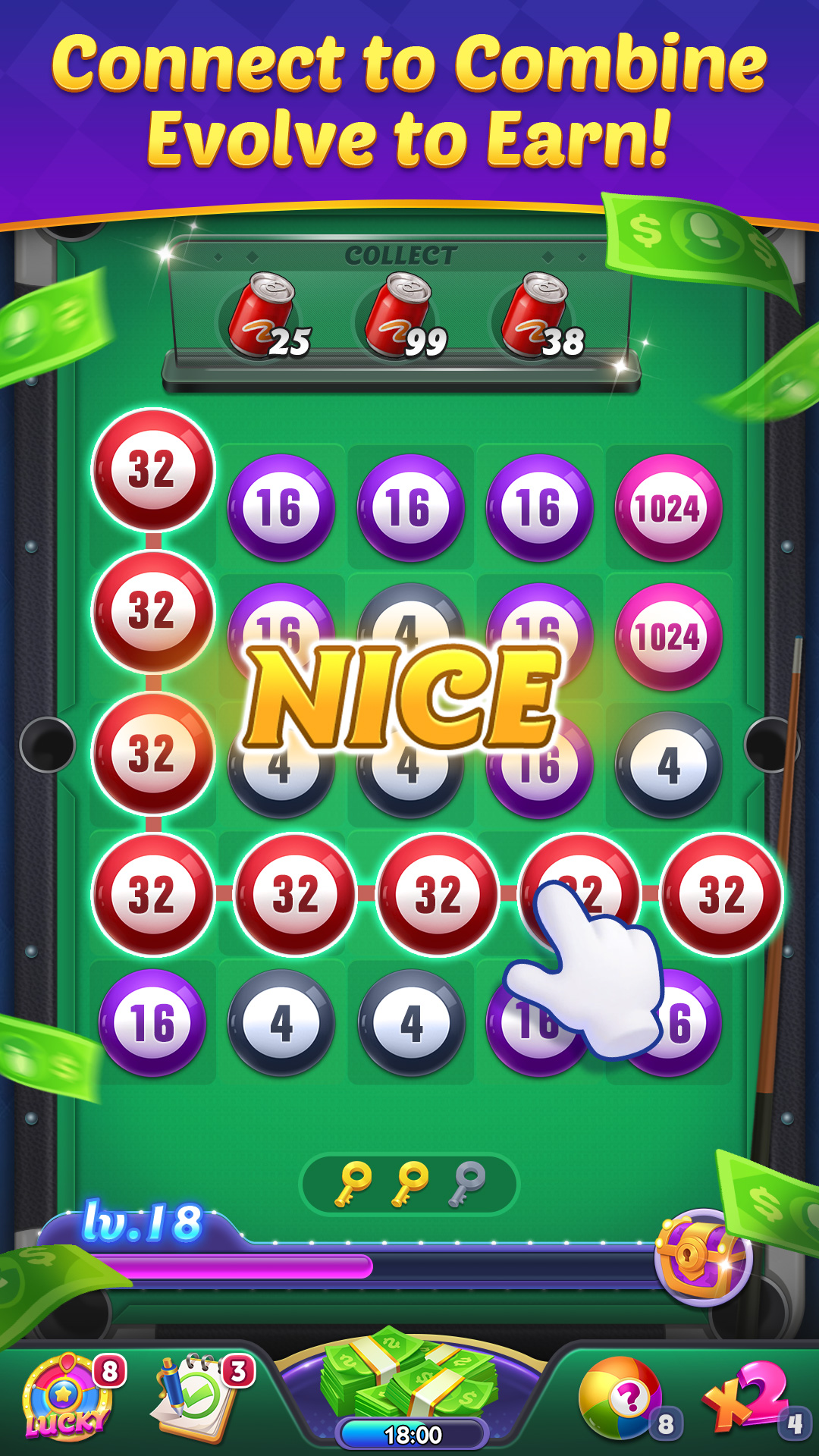 8 Ball Match Rush ingeniously combines the fun of billiards with an engaging puzzle game! Simply swipe your finger to connect adjacent billiard balls, merge them, and earn corresponding rewards!